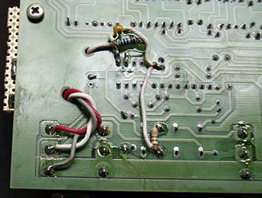 Then solder a 100 Ohm resistor across the center pins of the relay and solder a wire between this resistor and the components you have put at the back on the TL072 as you see on the picture.